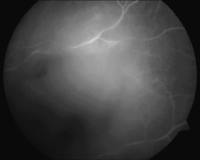 Figura 2. Angiograma normal, donde se evidencian restos del hemovitreo en reabsorción