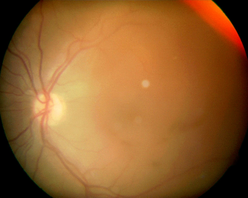 Figura 4. Hemovitreo prácticamente resuelto, tras impactos de láser YAG en la hialoides posterior