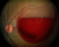 Figura 1. Hemorragia subhialoidea macular de grandes dimensiones