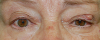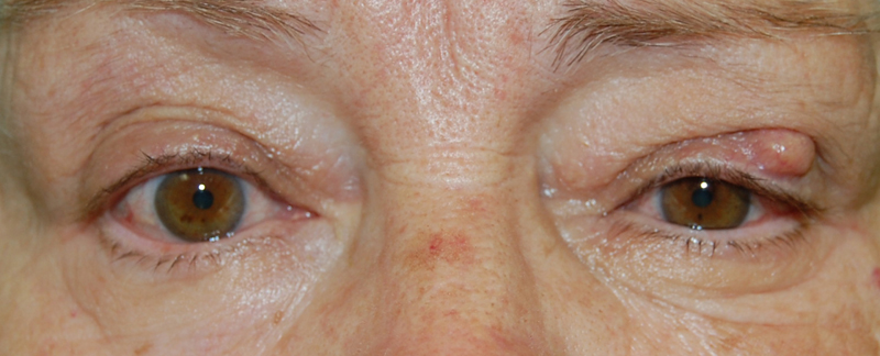 Figura 1. Paciente de 69 años con lesión palpebral de 2 años de evolución. La lesión era redondeada y tenía un diámetro máximo de 12 mm. Producía ptosis en el párpado superior izquierdo. El estudio histológico fue compatible con chalazión.