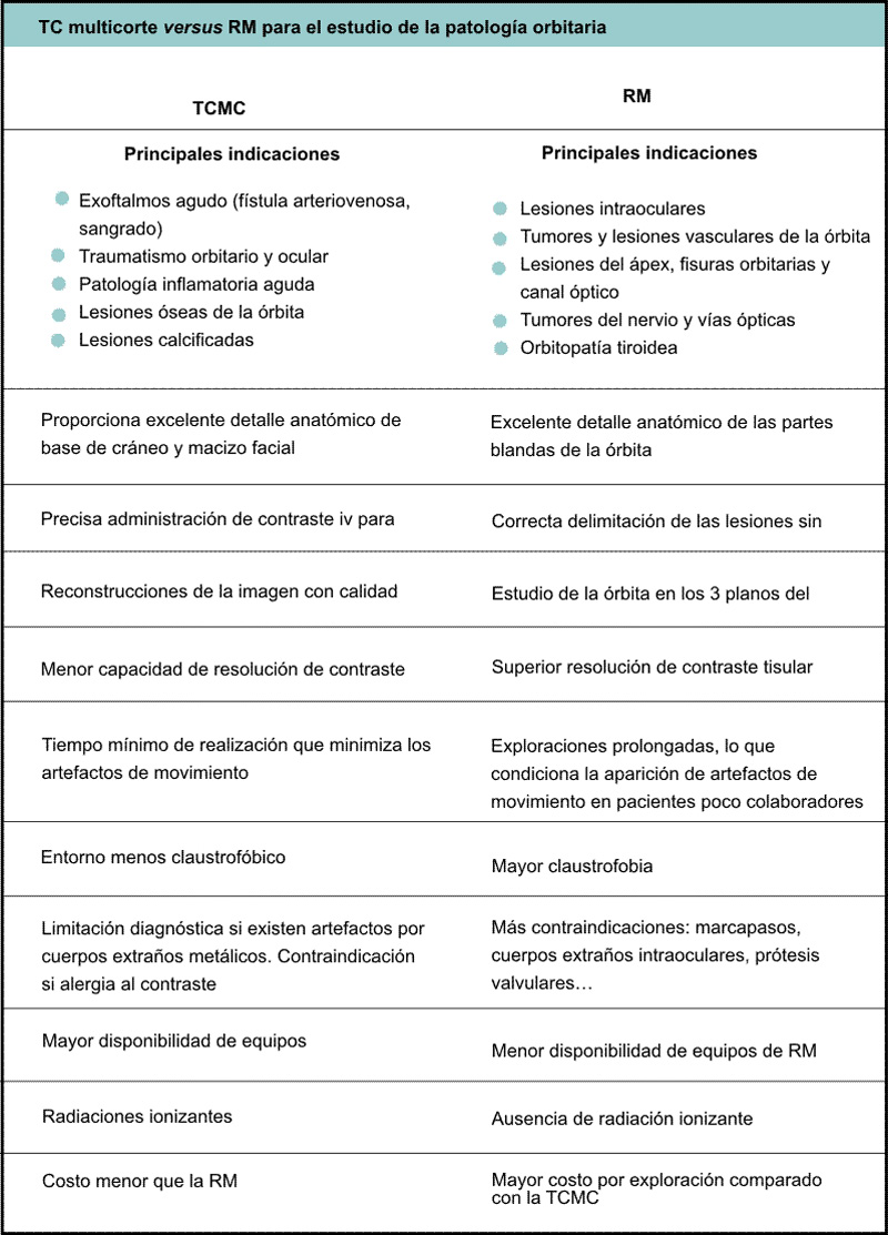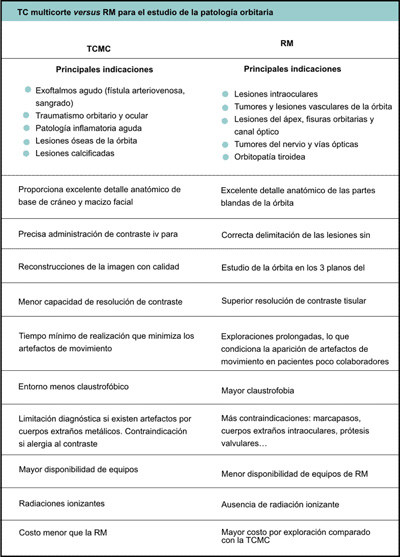 Tabla 3. TC multicorte versus RM para el estudio de la patología orbitaria