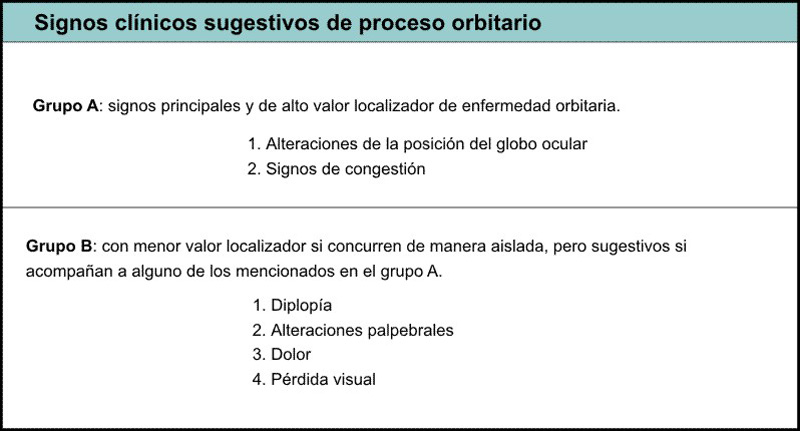 Tabla 2. Signos clínicos sugestivos de proceso orbitario