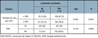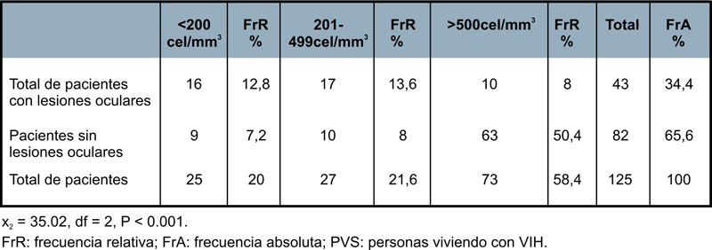 Tabla 1. Presencia de lesiones oculares en PVS según los niveles de CD4.