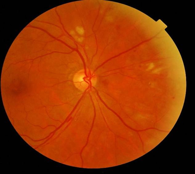 Elaborándose una historia clínica con un examen oftalmológico incluyendo la medición de la visión central y periférica. Biomicroscopia del segmento anterior y examen fundoscópico de la retina a través de la oftalmoscopia directa e indirecta. Las lesiones retinianas se registraron mediante Retinografía digital a color. Se realizaron pruebas de laboratorio como hemograma completo, bioquímica sanguínea, test serológicos, cuantificación de CD