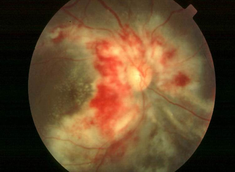 Figura 3. Retinitis por citomegalovirus (R/CMV).