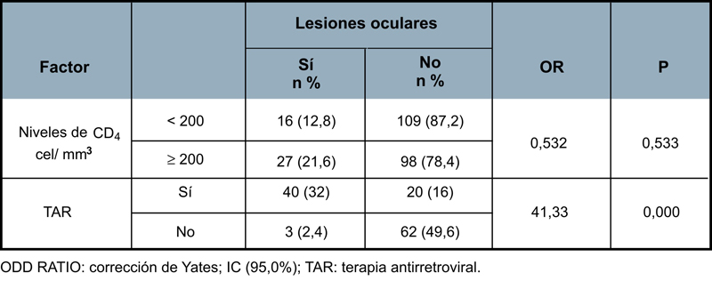 Tabla 2. Factores de riesgos para presentar lesiones oculares en los pacientes VIH.