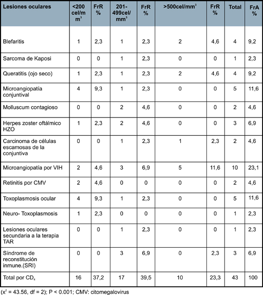 Correlación entre la cuantificación de CD4 y lesiones oftalmológicas en pacientes con VIH en Sancti Spíritus. Cuba