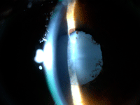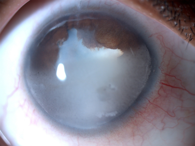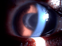 Figura 1. Uveítis postquirúrgica tras facoemulsificación en niño con catarata secundaria a pars planitis.