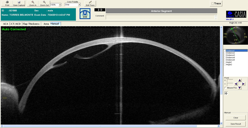 Se le realizó una OCT de polo anterior donde se ratificó la rotura de la membrana de Descemet del OD y la sinequia iridocorneal del OI (