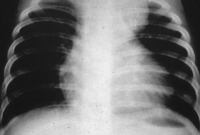 Figura 16. Radiografía de tórax: Ensanchamiento del mediastino producido por un neuroblastoma