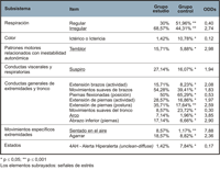 Así, por ejemplo, si en la fase basal tenemos para el ítem “respiración irregular” una OR = 5,92 podemos concluir que los neonatos que han sido explorados tienen 5,92 veces más posibilidades (riesgo) de tener una respiración irregular en la fase basal que los que no lo han sido.
