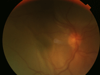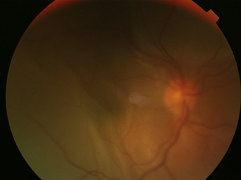 La fase uveítica aguda dura de 2 a 6 semanas y se caracteriza por DR bilateral (Figuras 1, 2 y 3).