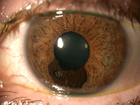 Melanocitoma de iris: son lesiones muy oscuras, casi negras, de superficie lisa, que puede presentar zonas de desprendimiento con aspecto “apolillado”. Asocian con más frecuencia dispersión de pigmento y glaucoma secundario (melanocitomalítico) (Figura 11).