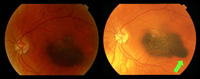 La autofluorescencia permite la detección de pigmento naranja en la superficie del tumor y de fluido subretiniano (