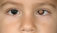 Figura 1. Leucocoria del ojo izquierdo en paciente con retinoblastoma unilateral.