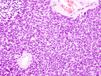 Figura 6). También suelen identificarse abundantes figuras de mitosis. Inmunohistoquímicamente las células tumorales expresan marcadores neurales, como enolasa neuronal específica, sinaptofisina y también proteína S100.