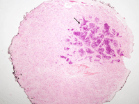 Figura 8. Invasión del margen quirúrgico del nervio óptico.