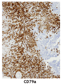 Figura 5. Biopsia retiniana en la cual con tinción específica (CD79a) se observan células linfoides.