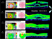 A través de la imagen por OCT se ha observado que la afectación de la retina externa y de la coroides característica de la coroiditis serpiginosa puede extenderse hacia la retina interna. De esta forma se produce un engrosamiento circunscrito de la retina en los pacientes con coroiditis multifocal que puede analizarse mediante OCT.