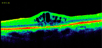 Figura 9. Edema macular quístico y traccional con presencia de membrana epiretiniana.