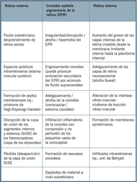 Tabla 1 se detallan los principales hallazgos de la OCT en las uveítis.