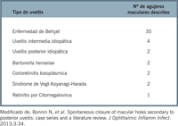 Tabla 3. Casos publicados en la literatura de agujeros maculares secundarios a uveítis.