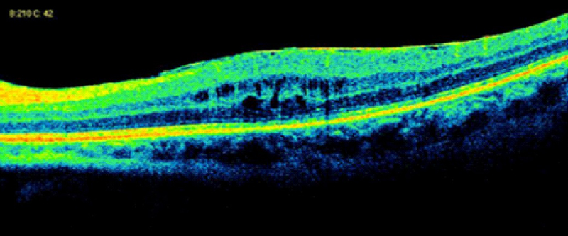 En un estudio comparativo con la angiografía fluoresceínica, se encontró que la OCT tiene un 89% de sensibilidad para diagnosticar el edema macular quístico