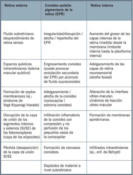 Tabla 1. Principales hallazgos de OCT en las uveítis según localización.