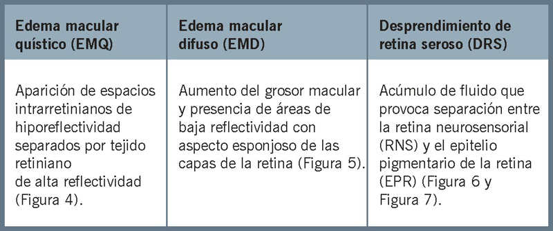 Tabla 2. Características de OCT de los 3 subtipos de edema macular.