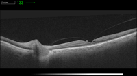 Las imágenes de OCT son útiles para detectar el desprendimiento posterior de la hialoides, cuando no es visible clínicamente. En el síndrome TVM la hialoides posterior aparece como una imagen hiperreflectiva y engrosada en la OCT