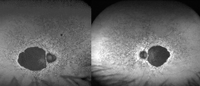 Figura 51. Distrofia en patrón reticular asimétrica. Autofluorescencia: ojo derecho, hipoautofluorescencia peripapilar con pequeño halo de hiperautofluorescencia; ojo izquierdo, hipoautofluorescencia peripapilar con líneas hiperautofluorescentes en patrón radial desde la fóvea.