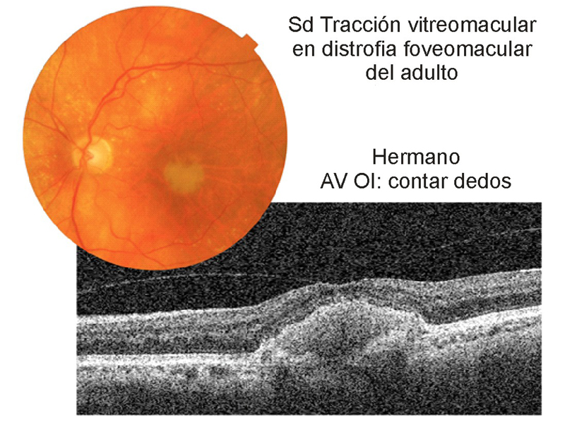 Figura 10) con distrofia viteliforme del adulto que además asociaban en su ojo izquierdo un síndrome de tracción vitreomacular.