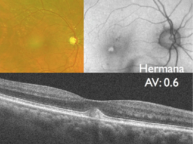 La hermana del paciente anterior presentaba en su ojo derecho (