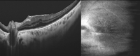 Figura 7. Membrana epiretiniana. Plano horizontal y coronal (en face) (Topcon SS-OCT DR-1).