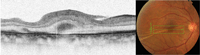 Figura 4. Membrana epiretiniana y fluido subretiniano subfoveal (Zeiss Cirrus SD-OCT).