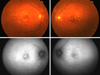 Lois N, Owens SL, Coco R, Hopkins J, Fitzke FW, Bird AC. Fundus autofluorescence in patients with age-related macular degeneration and high risk of visual loss. Am J Ophthalmol. 2002;133:341-9.
