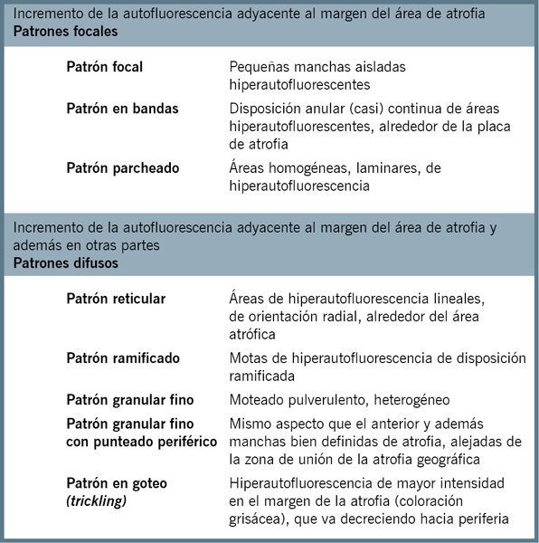 Tabla 1. Patrones de autofluorescencia en la DMAE atrófica.