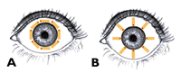 Transversa: con la sonda sobre la esclera y el haz orientado de manera tangencial al limbo corneal, es decir, siguiendo el margen de la córnea. Por convenio, la marca que indica la orientación del transductor se coloca de manera que quede situada hacia arriba o hacia la región nasal (Figura 1). Aporta información sobre la extensión lateral de las lesiones.