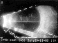 Cuando se realiza una ecografía de contacto dirigiendo el haz a través de la córnea (proyección axial), la primera estructura que se observa es la cara posterior del cristalino. A continuación se aprecia un espacio vacío que corresponde al vítreo, y finalmente el polo posterior.