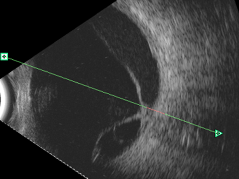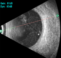 Si se utiliza una proyección lateral (con la sonda en contacto con la esclera) se evitará la atenuación del haz de ultrasonidos provocada por el cristalino y podrá explorarse con mayor detalle el polo posterior.
