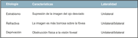 Estrabismo: es unilateral. La fóvea del ojo desviado es estimulada por una imagen distinta a la del ojo fijador produciéndose así , mecanismos adaptativos que llevan a la supresión de aquél, y como consecuencia la ambliopía7.