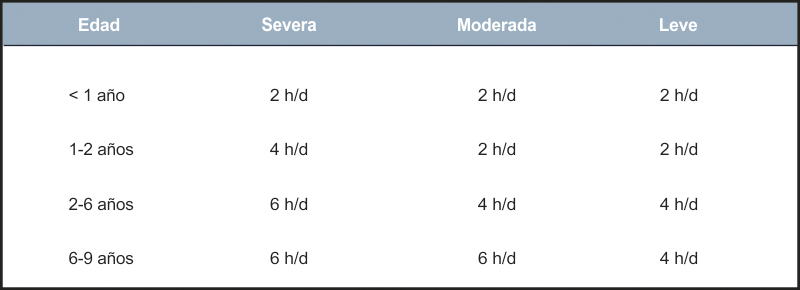 Tabla 2. Horas de oclusión según edad y ambliopía
