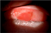 Figura 3. Hipertrofia conjuntival y membrana con pedículo.