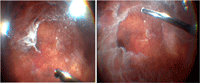 Figuras 3 y 4. Disección de Hialoides posterior ayudado por Triamcilonona y Perfluorocarbono (PFCL) en desprendimiento de retina.