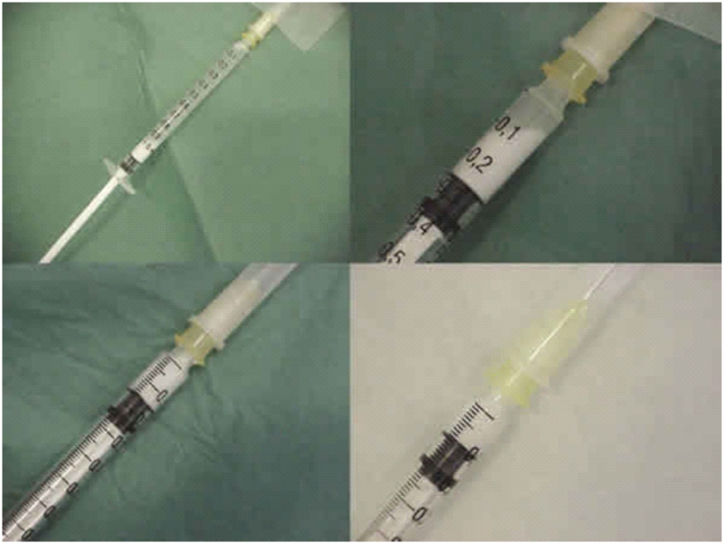 Se necesita una jeringa de 1cc, donde utilizaremos sólo el decantado del acetónido de triamcinolona (Trigondepot