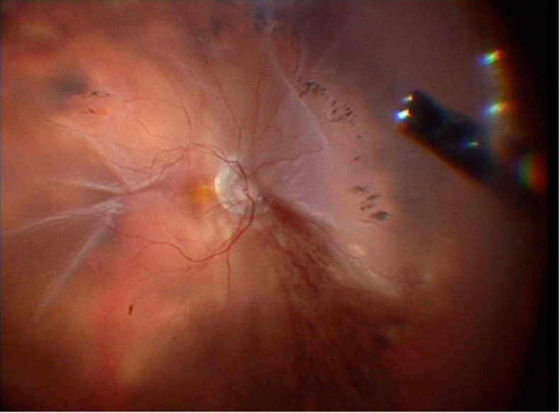 Figura 2. Desprendimiento de retina en Miope magno donde no se aprecia claramente el gel vítreo.