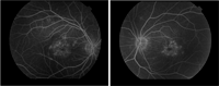 Figura 2). Se realizó una angiografía con fluoresceína que objetivó silencio coroideo en todas las fases del angiograma y la aparición de múltiples focos hiperfluorescentes alrededor de la fóvea en ambos ojos (