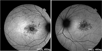 Figura 3). La autofluorescencia determinó una hipoautofluorescencia foveal bilateral con presencia de pequeños puntos hiperautofluorescentes perifoveales (