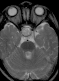 La edad de presentación típica es alrededor de los 9 años y afecta a ambos sexos por igual. El 75% de los gliomas del nervio óptico se presentan en la primera década de la vida y el 90% en las dos primeras. La prevalencia de neurofibromatosis tipo 1 (NF-1) en pacientes con glioma de la vía óptica varía según las series entre el 10 y el 70%. En la NF-1 el glioma del nervio óptico puede ser multifocal y en ocasiones involucra ambos nervios (Figura 3).