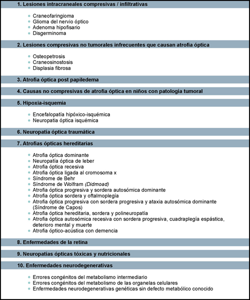 Tabla 1. Etiología de la atrofia óptica en la infancia.